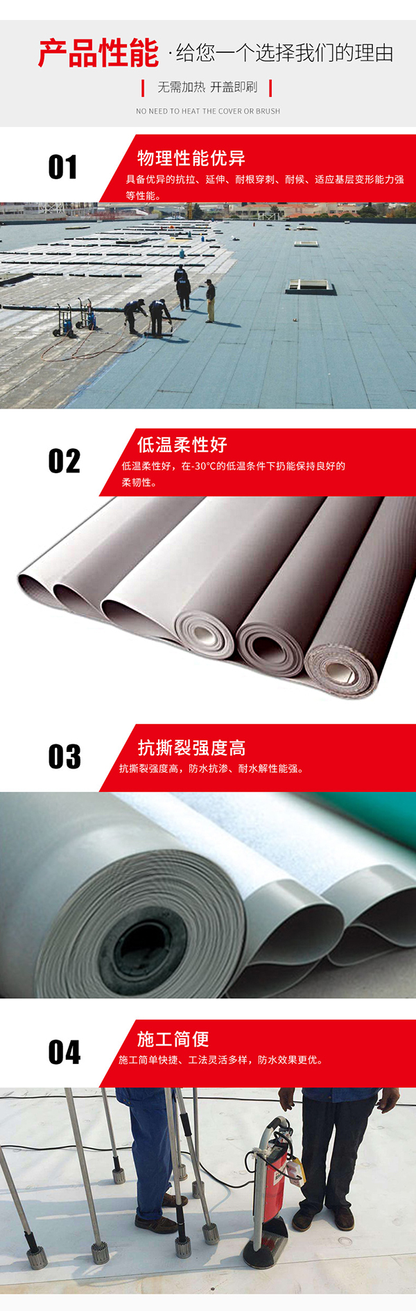 拉伸強(qiáng)度高,抗撕裂強(qiáng)度高,耐熱性好,勻質(zhì)性好,低溫柔性好